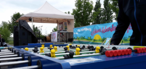Unsere Stände eignen sich gut, um sie in ein bestehendes, öffentliches Veranstaltungsformat einzubinden – zum Beispiel einen Aktionstag, ein Festival oder ein Sommerfest.. Wir bieten Mitmach-Aktionen an, wie etwa ein Glücksrad mit Quizfragen, Sprühkreide oder eine Fotowand. Wir haben tolle Gewinne mit unserem Schöner leben ohne Nazis-Slogan dabei und kommen gern mit den Menschen vor Ort ins Gespräch. Unsere Angebote richten sich an Jugendliche und junge Erwachsene im Alter von 14 Jahren bis Mitte 20.